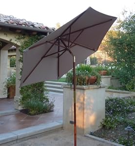 7ft Wooden Market Umbrella With Tilt Mechanism - Taupe Best Price