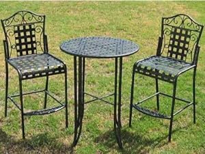 Mandalay Bar Bistro Set - Bar Table And 2 Chairs No Arms In Antique Black - Patio Furniture Price