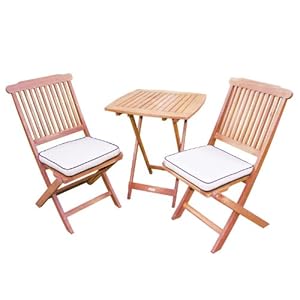 Outdoor Interiors Eucalyptus 3 Piece Square Bistro Outdoor Furniture Set - Includes Cushions Feature
